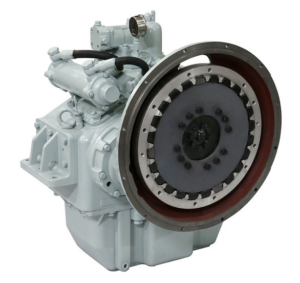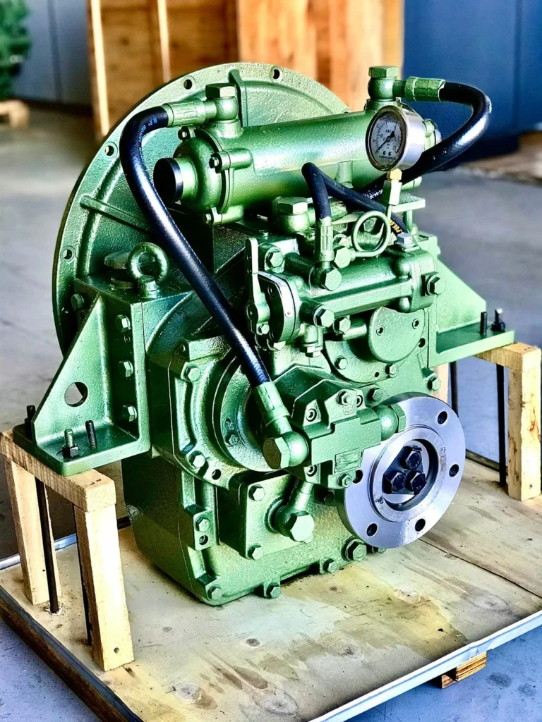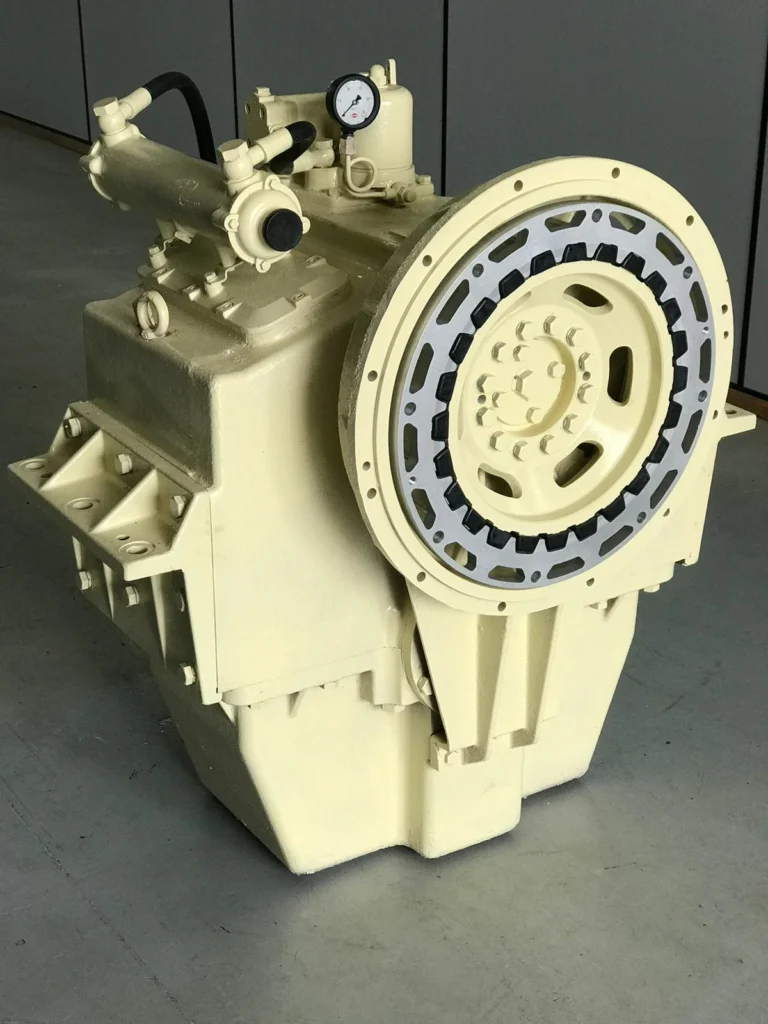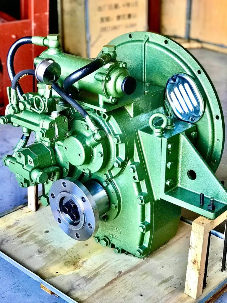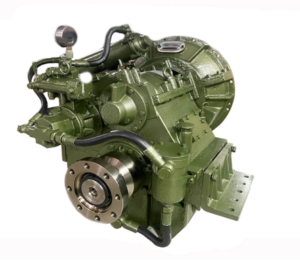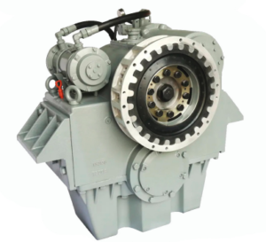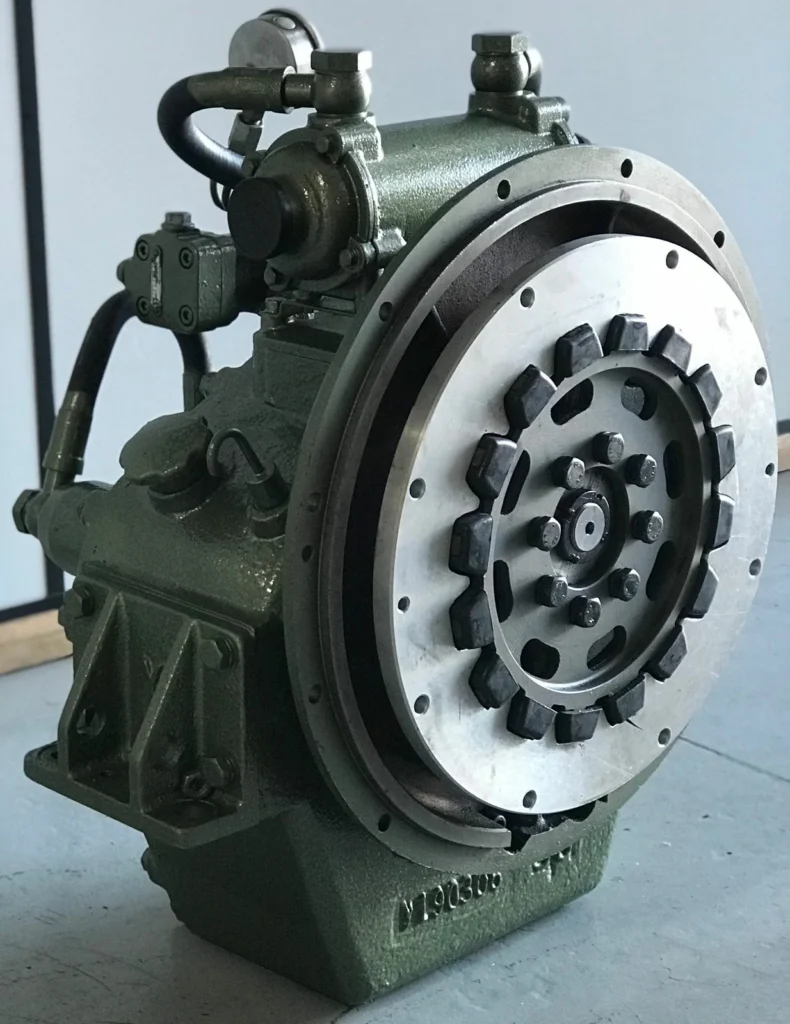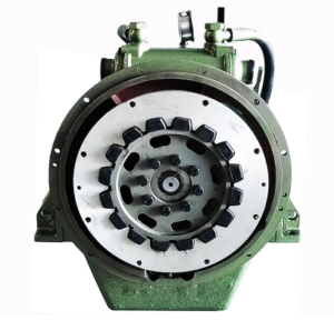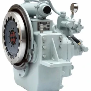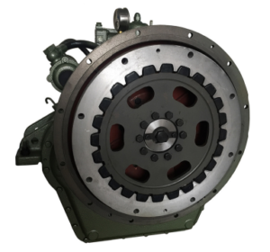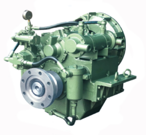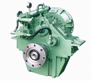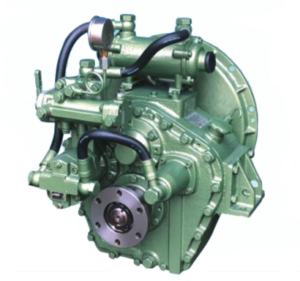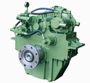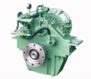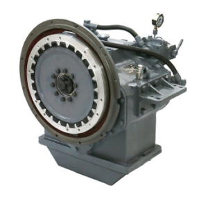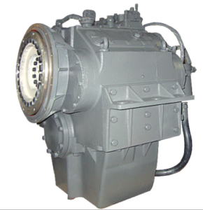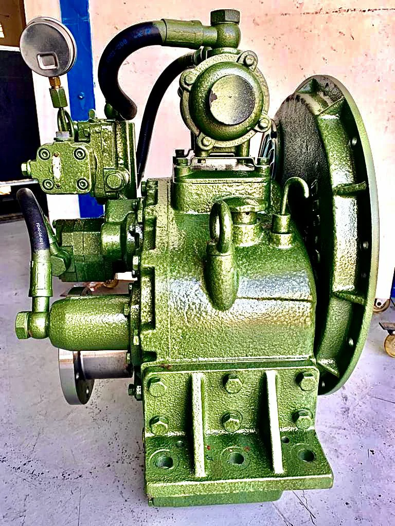 Reversor redutor marítimo com embreagem muti-disco acionada hidraulicamente.